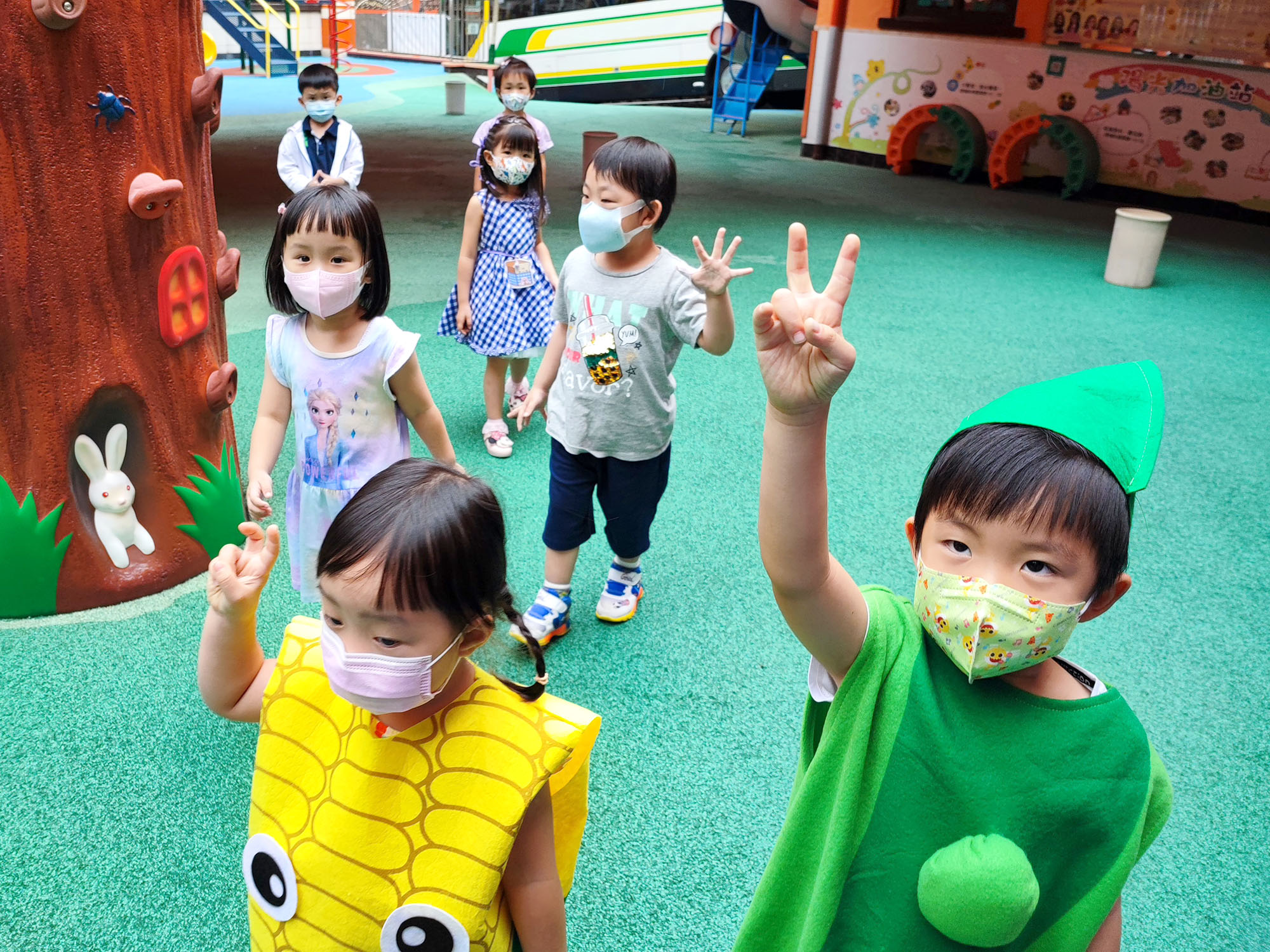 本園於5月31日(星期二)舉行了「有營食物」生日會,為三月至六月份生日的小朋友慶祝,幼兒都穿著了不同的食物服飾回校,有香甜的蘋果、美味可口的披薩及營養豐富的粟米等等,造型十分可愛有趣!