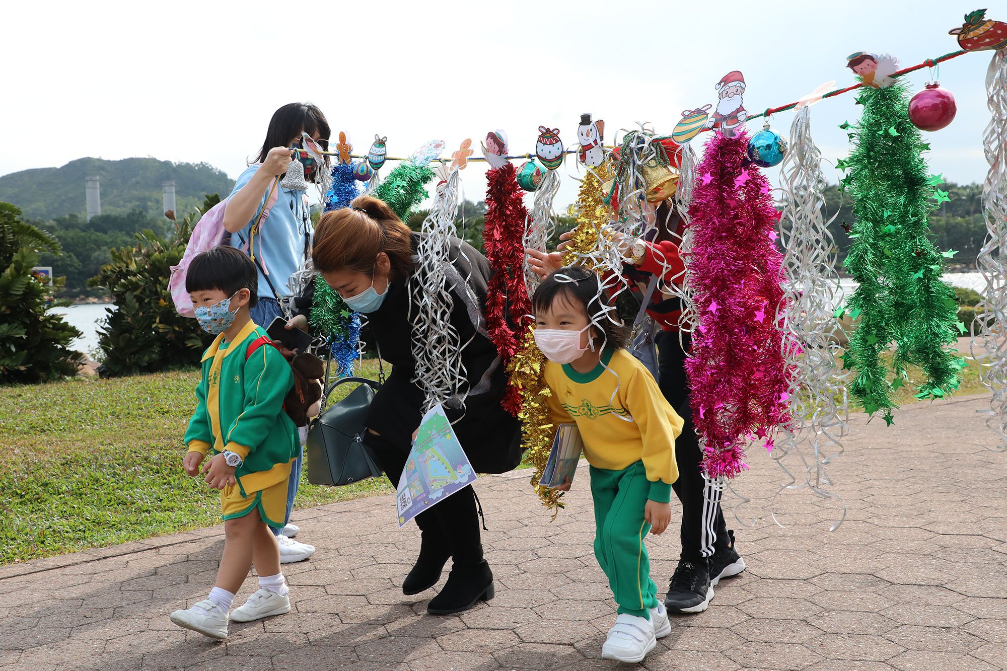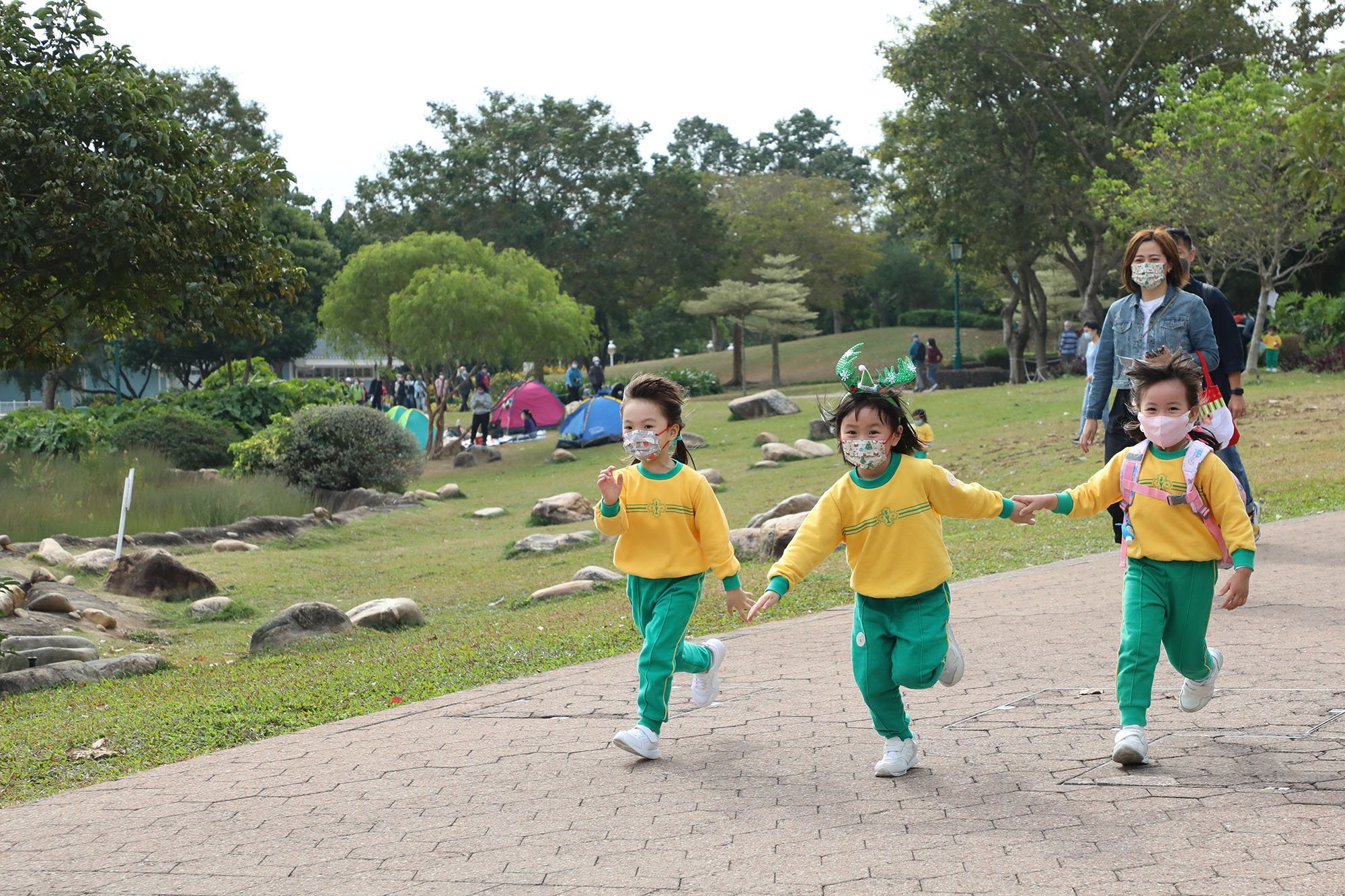當天早上天氣晴朗,全體師生及家長到達東涌迪欣湖水上活動中心,幼兒們歡天喜地拖著爸媽的手,充滿活力地叫著、跑著向前走,帶領家人沿路在不同的地點拿取貼紙及完成各項任務,他們更掃瞄QR code貼紙,觀看小耶穌誕生的故事。老師們分佈在不同的地點為家長及小朋友打氣和加油,家長與幼兒高舉勝利的手勢,面露喜悅的笑容,完成活動後他們更一起在草地上野餐啊!