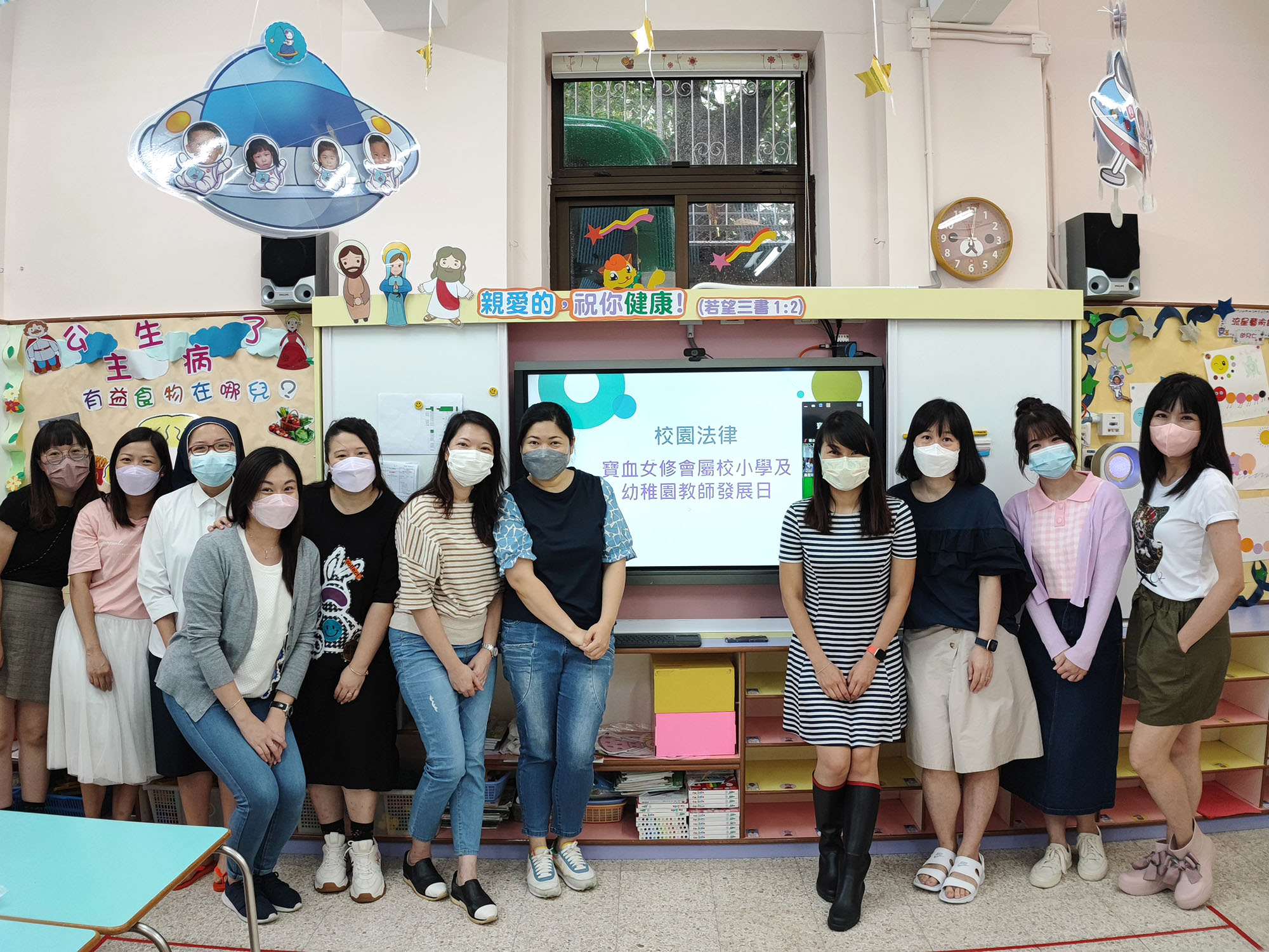 本園全體老師於2022年5月12日參與由寶血女修會教育事務處主辦之「校園法律」講座,當日邀請了香港調解仲裁中心主席蘇文傑律師講解有關校園法律知識,蘇律師透過一些實際事例闡述有關校園律例,以及學校和老師在校園法律上的角色與責任,藉此加強老師在校園法律上的專業知識,老師們都十分投入講座中,認真聆聽講者的解說。