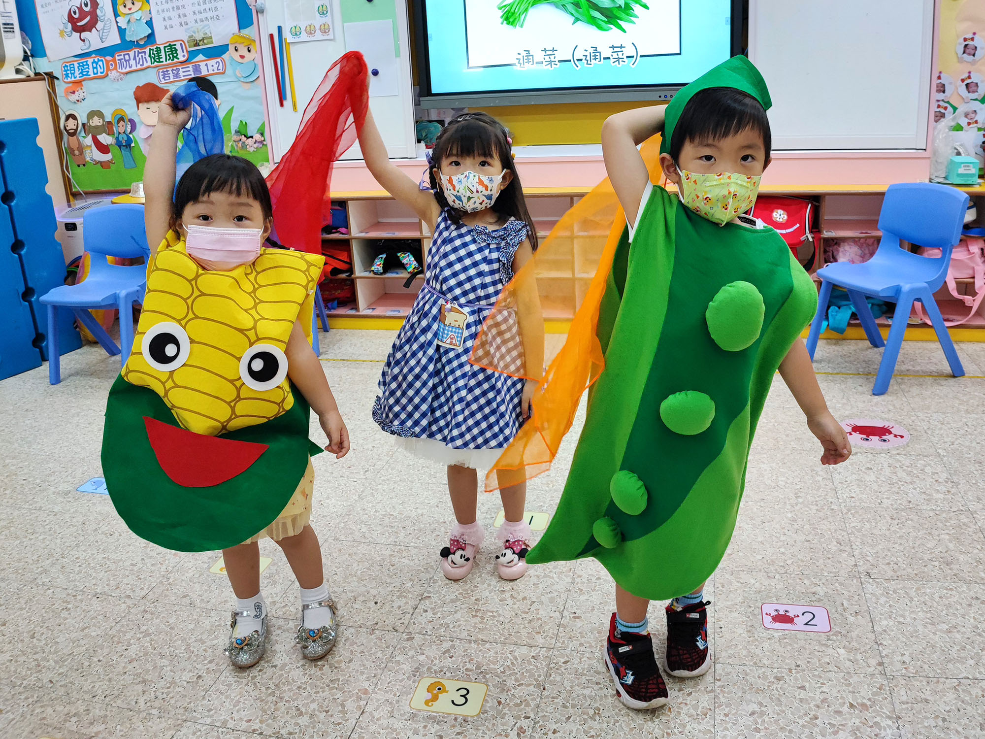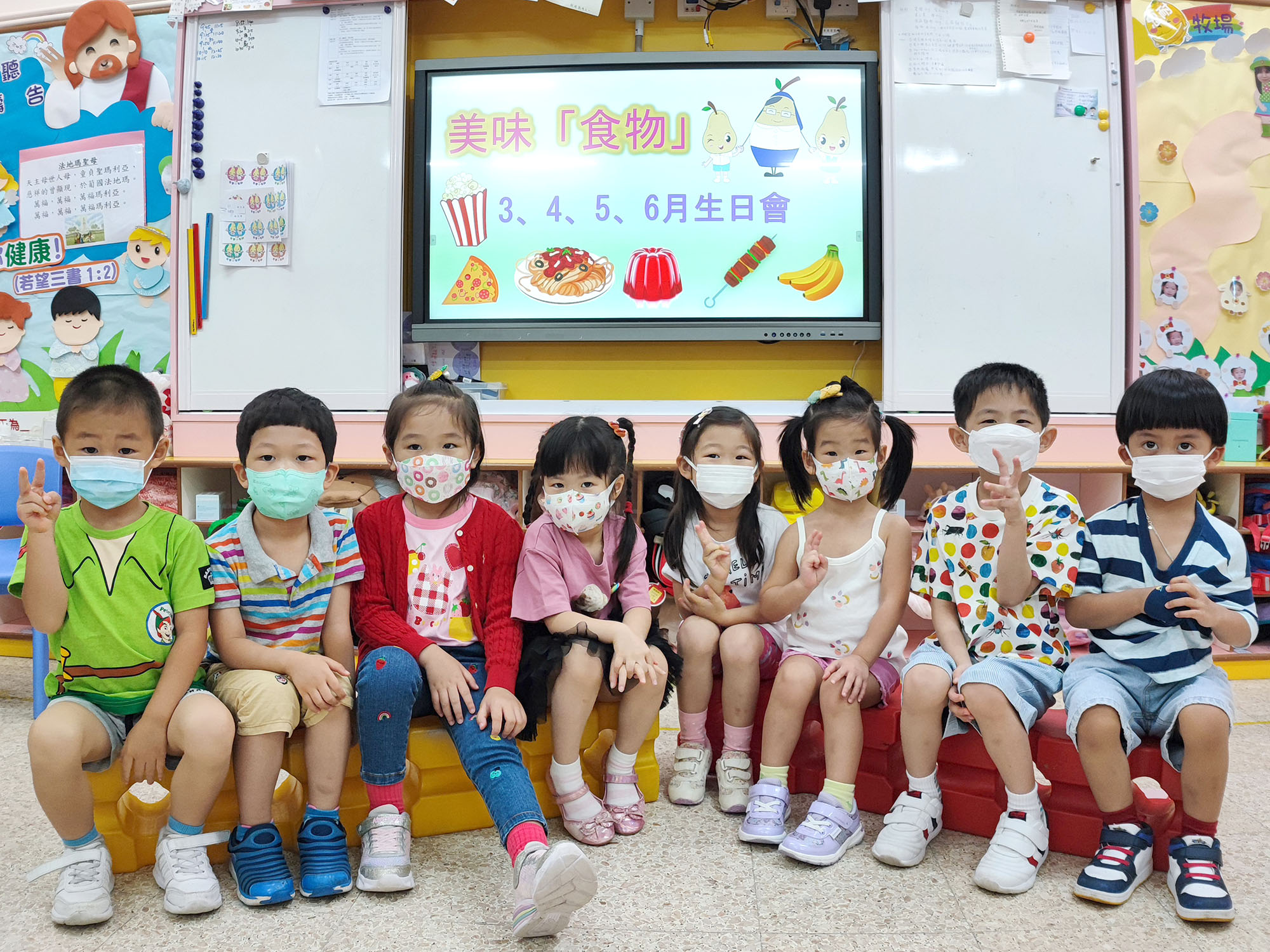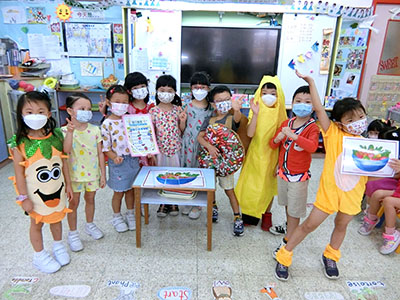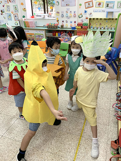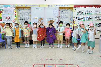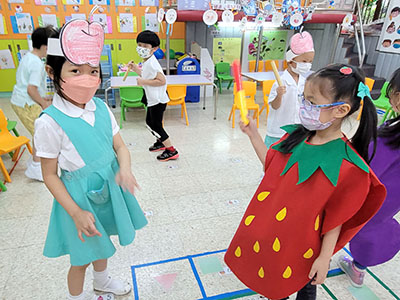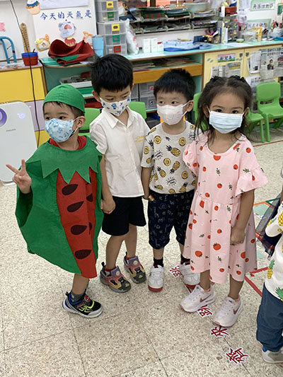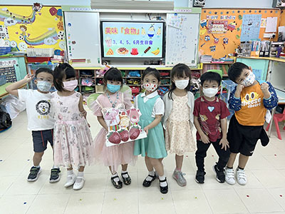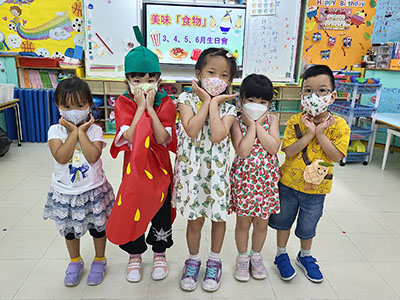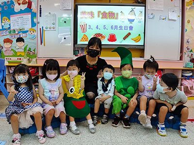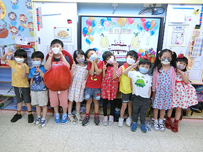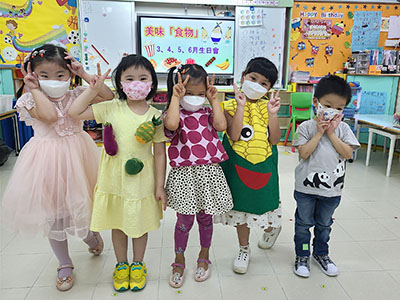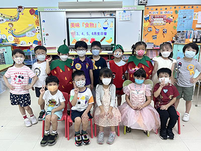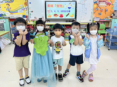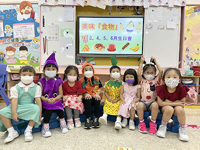 本園於5月31日(星期二)舉行了「有營食物」生日會,為三月至六月份生日的小朋友慶祝,幼兒都穿著了不同的食物服飾回校,有香甜的蘋果、美味可口的披薩及營養豐富的粟米等等,造型十分可愛有趣!