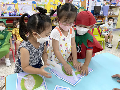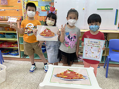 活動當天幼兒更化身小廚師,協助奇奇樂樂烹調不同美味的食物,為梨子媽媽慶祝生日,活動內容豐富吸引,幼兒都十分投入,師生們過了愉快的一天!