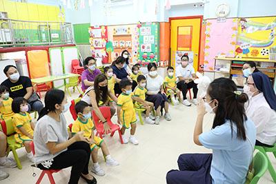 8月30日(星期一)是幼兒班的開學日!小朋友在家長的陪伴下,帶着愉悦的笑臉走進學校,在操場上與甘修女、馬副校長、主任和老師彬彬有禮地打過招呼後,便走進課室。上課前,甘修女和馬副校長透過視像系統向家長和小朋友表達了至誠的歡迎,接着老師利用手偶與小朋友一起唱歌和進行有趣的遊戲,家長與小朋友在輕鬆愉快的氣氛下渡過了開學日,讓小朋友感受到上學的樂趣,邁進多姿多采的學習生活。
