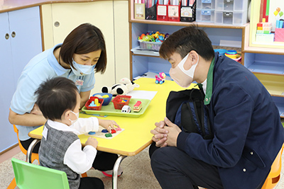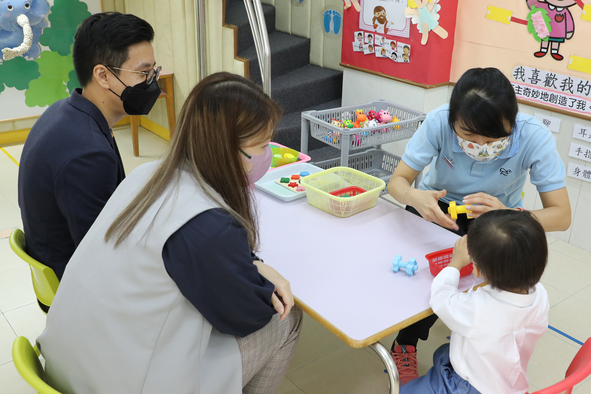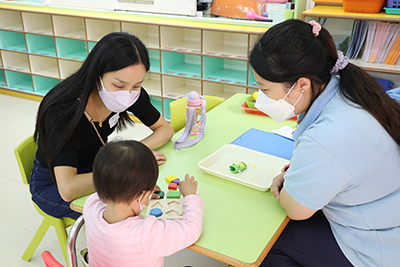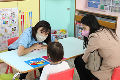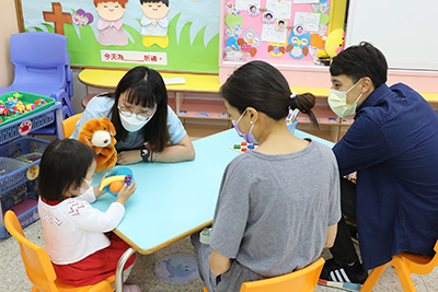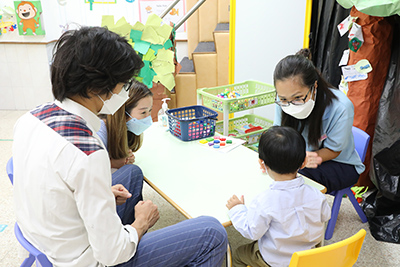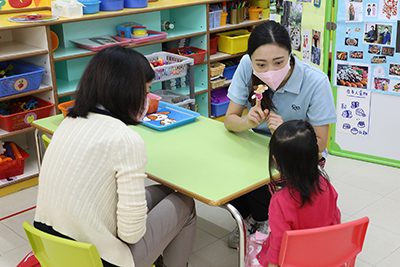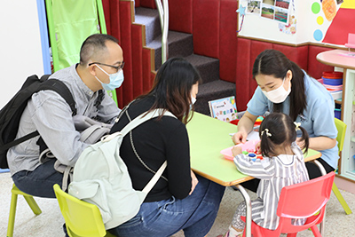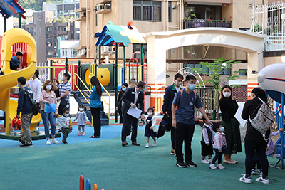 本園於2021年11月19日(星期五)及11月20日(星期六)進行2022-2023年度新生入學面試,當日爸爸媽媽陪同小朋友到校,他們先在操場上玩滑梯、轉轉杯等遊樂設施,然後到遊戲室與老師一起遊戲,幼兒參與角色扮演遊戲、體能活動和與老師一起玩小肌肉玩具,與老師彼此建立關係,家長更與老師分享幼兒的輓事,老師從中了解幼兒的發展。