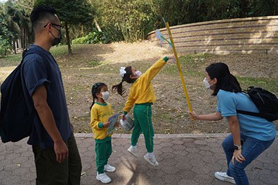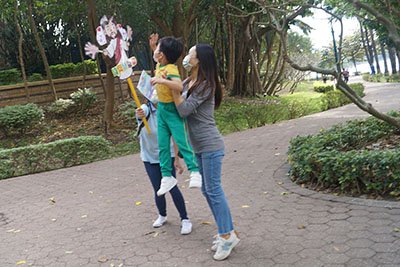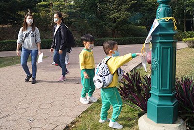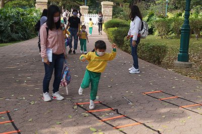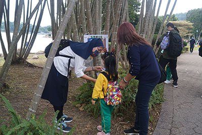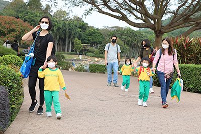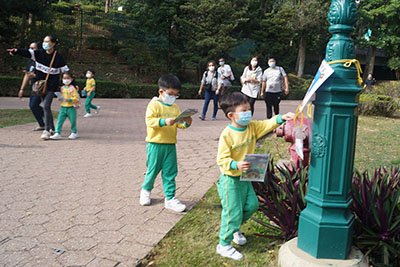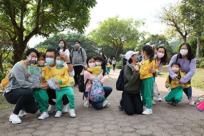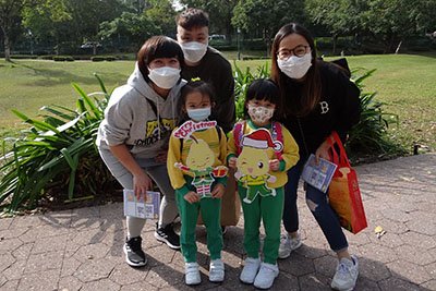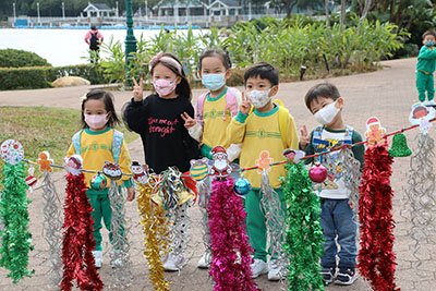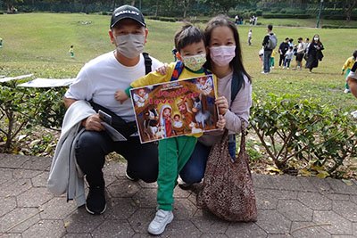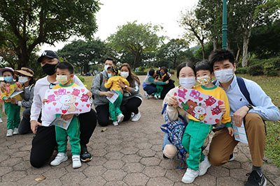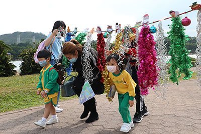 當天早上天氣晴朗,全體師生及家長到達東涌迪欣湖水上活動中心,幼兒們歡天喜地拖著爸媽的手,充滿活力地叫著、跑著向前走,帶領家人沿路在不同的地點拿取貼紙及完成各項任務,他們更掃瞄QR code貼紙,觀看小耶穌誕生的故事。老師們分佈在不同的地點為家長及小朋友打氣和加油,家長與幼兒高舉勝利的手勢,面露喜悅的笑容,完成活動後他們更一起在草地上野餐啊!