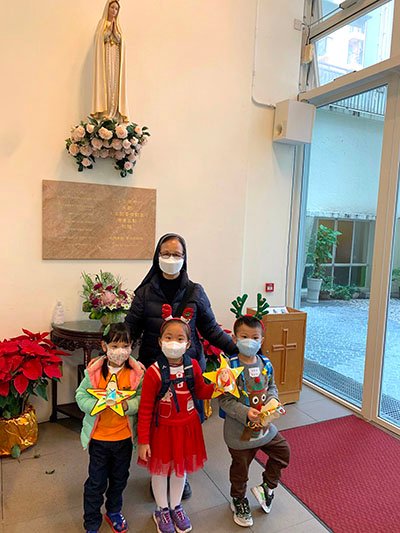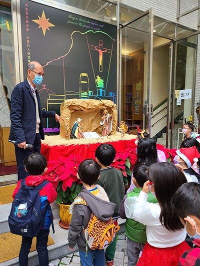 聖誕節是紀念耶穌降生、普天同慶的佳節。本園高、低、幼班共50多個公教家庭於2021年12月22日假聖十字架堂舉行「聖誕將臨期聚會」。當天的活動十分豐富,有祈禱、親子製作馬槽和親子遊戲得等,還有聖十字架堂會長馬先生帶領我們導賞和朝拜馬槽。最後,小朋友拿著自己製作的小馬槽一起唱聖誕歌,在歡樂的歌聲與笑聲下結束當天的活動,他們更答應把小耶穌降生的的喜訊傳揚開去。